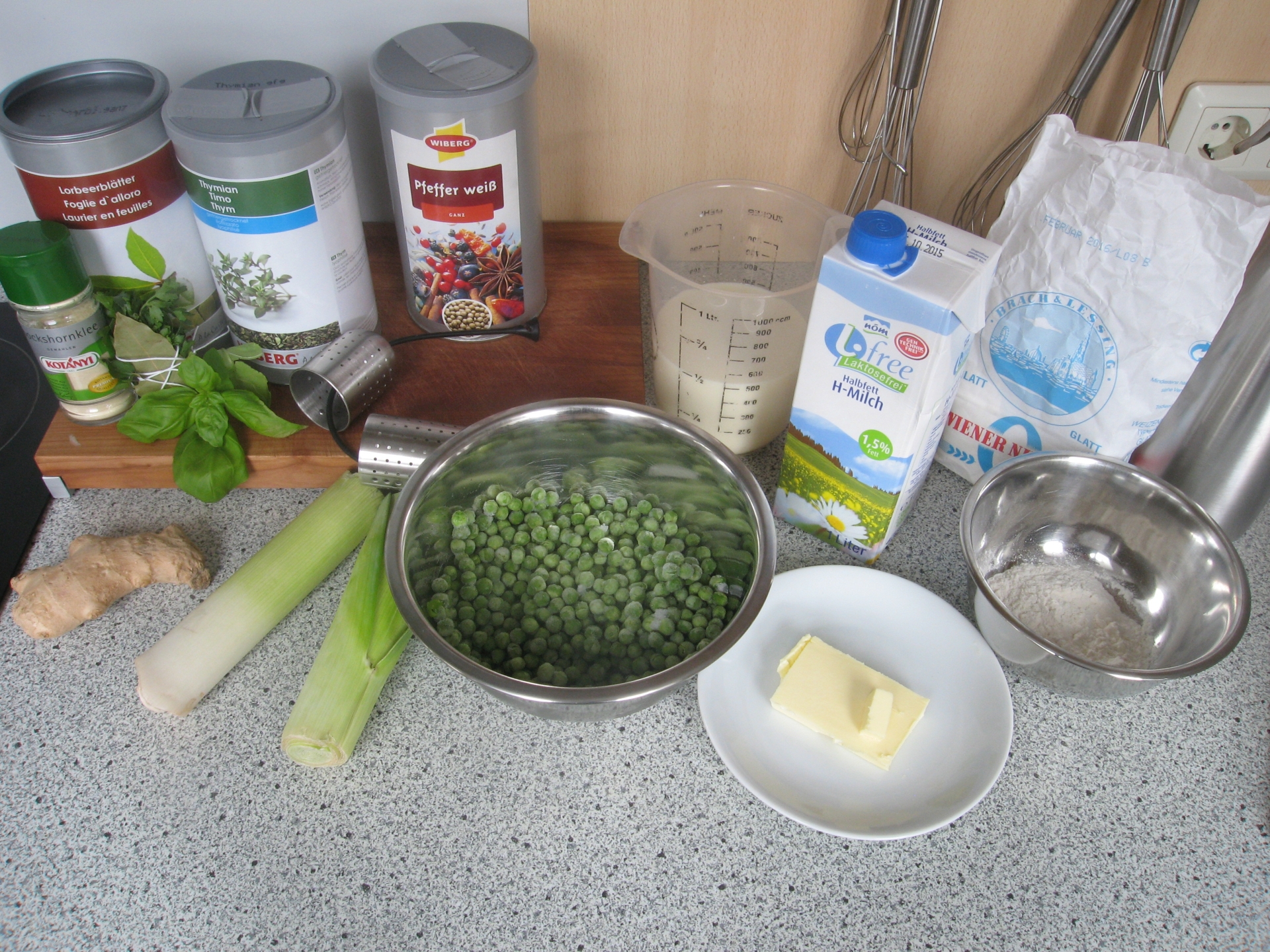 Es gibt zwar Erbsenschaumsuppe, aber gibt es Erbsenschaum pur? Ja, es gibt. Der Erbsenschaum besteht im Prinzip aus einer Béchamel-Sauce, deren Gewürze in Richtung Erbsen abgeschmeckt sind und pürierten Erbsen.