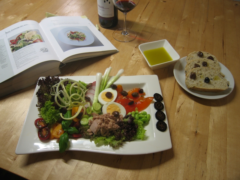 Wir hatten keine Sardellen, dafür „Schwarze Nüsse“, die hatten wir zufällig daheim. Man kann nicht sagen, was besser ist: ob Ducasses Kombination oder unsere. Ich kann nur sagen, dass es uns geschmeckt hat.