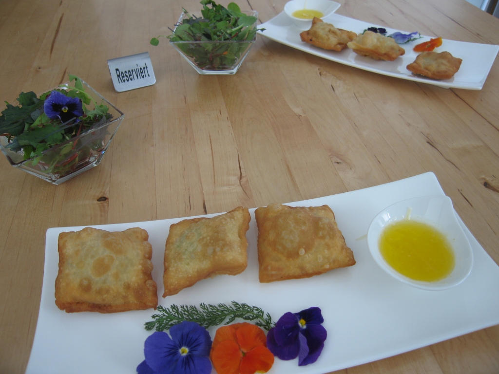 Nun, das Internet klärt auf. Barbajuans sind das Nationalgericht der Monegassen, jedes Jahr pünktlich verspeist zum 19. November. Barbajuans bedeutet „Onkel Johann“ auf monegassisch – ja auch das ist wie das Provencialische eine eigene Sprache, die im Strudel der französischen Geschichte zur Bedeutungslosigkeit herabgesunken ist. Die Barbajuans werden nicht mit Reis gemacht, wie das schon ein Stückchen weiter im Nachbarort Menton geschieht. Aber dafür mit Erdäpfeln? Dann wären sie immer noch in der High Carb Kategorie. Aber Alain Ducasses Sommer-Barbajuans beinhalten weder Reis noch Kartoffeln. Somit können wir sie gut und gern als Nearly Low Carb einstufen, nearly weil ja doch noch der Teig einen gewissen Anteil an Kohlenhydraten beisteuert. Barbajuans oder Ravioli sind nun mal kein LowCarb Food. Geschmeckt haben sie aber vorzüglich. Danke Onkel Hans, wer auch immer du bist oder warst.