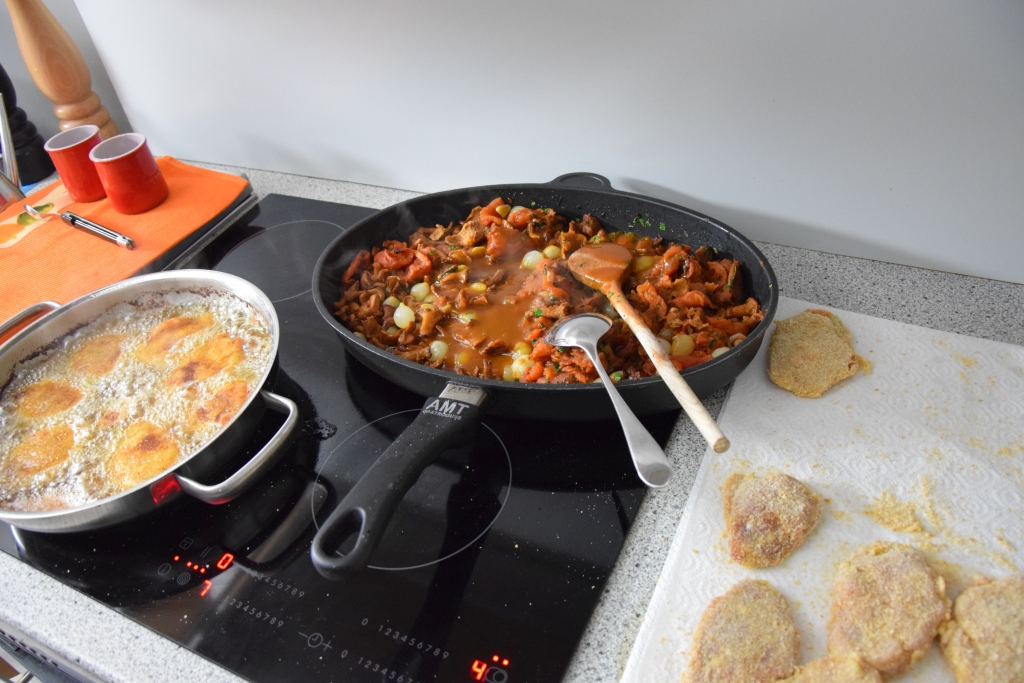 Die Saltimbocca haben wir nach dem gleichen Rezept gemacht wie vor ein paar Tagen. Nur dieses Mal haben wir auch alle Beilagen laut diesem Rezept gemacht und um Kokosreis erweitert.