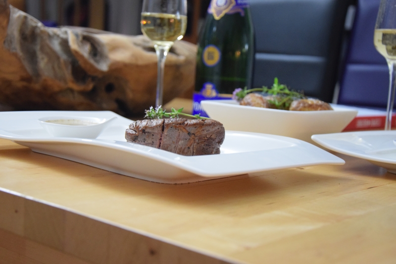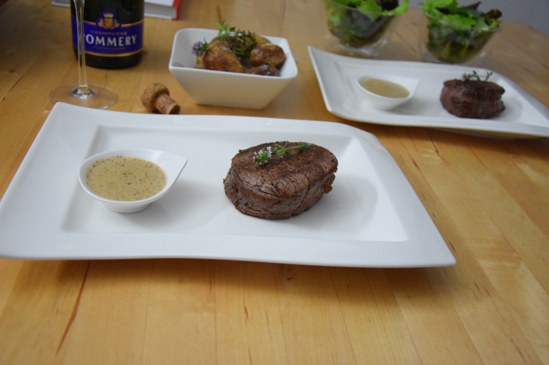 PS: Ich würde wahrscheinlich keinen Champagner dazu trinken, sondern eher einen leichten und würzigen Rotwein, der das Rinderfilet nicht erschlägt und gut den Charakter des Pfeffers unterstreicht. Zum Beispiel einen Frühburgunder von der Ahr.
