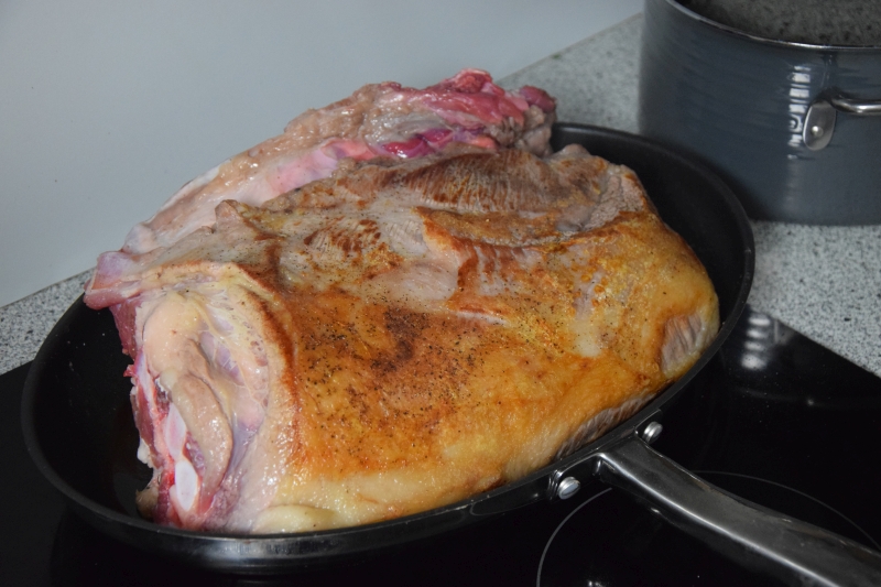 Dieses Gericht ist zugegebermaßen etwas aufwändig. In der feinen Restaurantküche wird jeden Tag Hühnerbrühe aufgesetzt. Schon alleine das Blanchieren der Hühnerteile dauert und dann erst das Köcheln. Das Herstellen einer Hühnerbrühe kann man locker mit 2 Stunden veranschlagen. Aber man kann auch ein Fertigpulver nehmen. Die Meisterbrühe dauert dann nicht mehr so lange. Und man kann sie aufbewahren. Einmal verwendete Meisterbrühe kann mehrmals verwendet werden, wenn sie nur Geschmackgeber war und noch nicht mit anderen Säften in Berührung gekommen ist. Man muss sie nur abseihen und einfrieren. Und so geht auch Ottolenghi/Scully bei diesem Gericht von der Meisterbrühe als fertige Zutat aus. Das eigentliche Rezept ist dann immer noch aufwändig, aber dadurch ist ja schon einiges gewonnen. Nur wir haben hier alles von der Pieke auf gemacht.