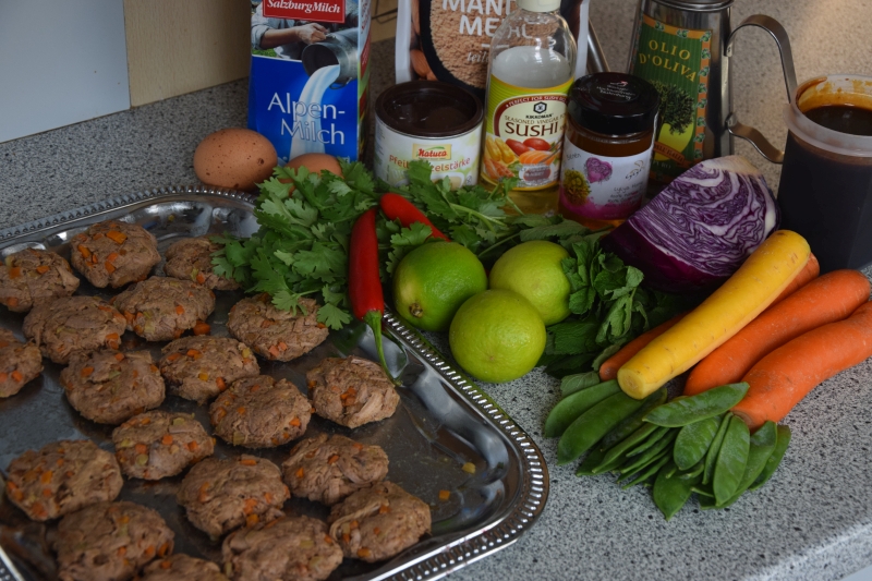 Yotam Ottolenghi, Ramael Scully „NOPI Das Kochbuch Orientalisch Asiatisch Raffiniert“, DorlingKindersley 2015 „Rindfleischkroketten mit asaitischem Krautsalat“, S. 196