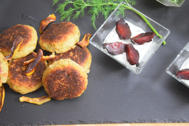 Diese Lachsfrikadellen werden mit einem Meerrettich-Lassi und Meerrettich-Crème serviert, sowie mit Roter Bete. Das Meerrettich-Lassi wird mit grünen Äpfeln und Petersilie verfeinert. Die Meerrettich-Crème einfach mit klein gehacktem Dill.