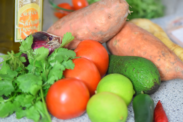 Für die Guacamole drei geschälte und entkernte Tomaten in kleine Würfel schneiden. Eine rote Zwiebel fein hacken. Rote Chili und Jalapenos in kleine Würfel schneiden. Koriandergrün feinhacken. Zwei Avocados mit Salz und Limettensaft und einem Schluck Olivenöl in der Zauberette zerhacken. Gehackte rote Zwiebel, feingehacktes Koriandergrün, gewürfelte Tomaten und Chilis unterrühren. Mit Salz und Limettensaft abschmecken.