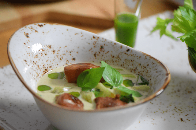 Rezept Poulardenbrust, Limettencurry, Sellerie mit Thai-Basilikumöl