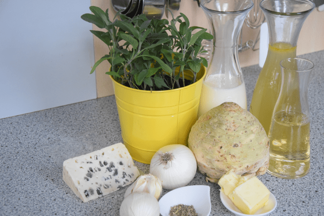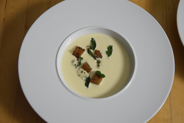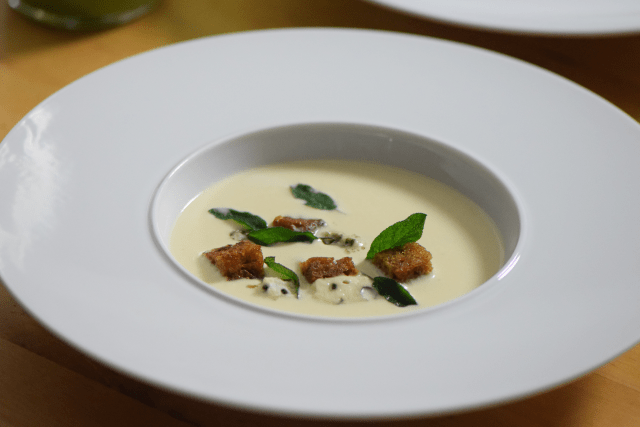 Rezept Selleriesuppe mit Schaf-Roquefort und frittierten Salbeiblättern