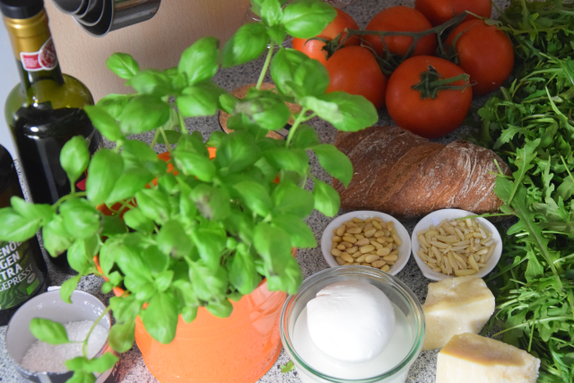 Rucola hat durchaus seine Meriten, im Salat zum Beispiel hab ich Rucola sehr gerne. Tomaten Mozzarella aber lieben Basilikum-Pesto. Was übrigens sehr gesund ist…