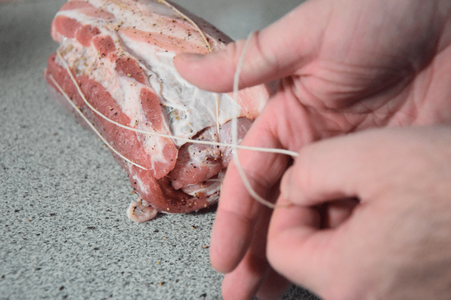 Nee, fertig gekauften Rollbraten, den würde ich nicht mehr wieder kaufen. Vor vielen Jahren hatte ich mir mal so was gekauft und bin damit so eingegangen. Das war richtig eklig, mit dem ganzen Fett in der Mitte. Also dass brauch ich nicht wieder.