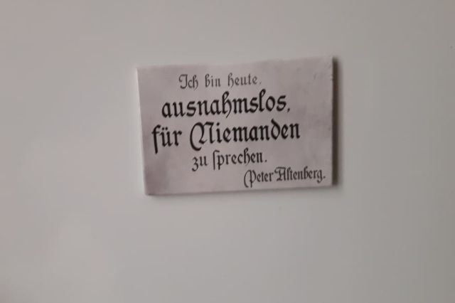 Heute feiern wir den Kaffeehausliteraten Peter Altenberg, heute vor 100 Jahren ist er verstorben. Obwohl ihm sein Geigenlehrer Genialität ohne Fähigkeiten beschieden hat, er bei der Matura durchgefallen ist, sich mit literarischen Miniaturen sein Leben verdingte, aber kein größeres Werk entstand, war ihm ein Ehrengrab am Wiener Zentralfriedhof sicher, Gegenstände seines Zimmers im Graben-Hotel aus dem Nachlass wanderten in das Historische Museum der Stadt Wien, eine Altenberg-Figur sitzt heute im Café Central, wo er früher regelmäßig anzutreffen war. Und wenn nicht, dann war er auf dem Weg dorthin. Von ihm sind Aussprüche erhalten geblieben, die ins Wiener Unterbewusstsein gesickert sind. Man weiß zwar nicht, von wem das ist, aber es kommt einem so bekannt vor. „Für mich ist es am schönsten im Kaffeehaus. Man ist nicht zu Haus und doch nicht an der frischen Luft.“ oder „Später ist zu spät“. „Ich bin heute ausnahmslos für Niemanden zu sprechen.“ hat es auf eine Magnettafel geschafft, die in der Hermesvilla im Lainzer Tiergarten verkauft wird, so kann sichs nun jeder an die Tür kleben, wie schon seinerzeit Altenberg. „Wehe der Nachkommenschaft, die Dich verkennt!“, mit diesen drohenden Worten beendete Karl Kraus seine Grabrede. Davon kann nun wirklich keine Rede sein, wenn sogar auf einem Kochblog ein Nachruf erscheint.