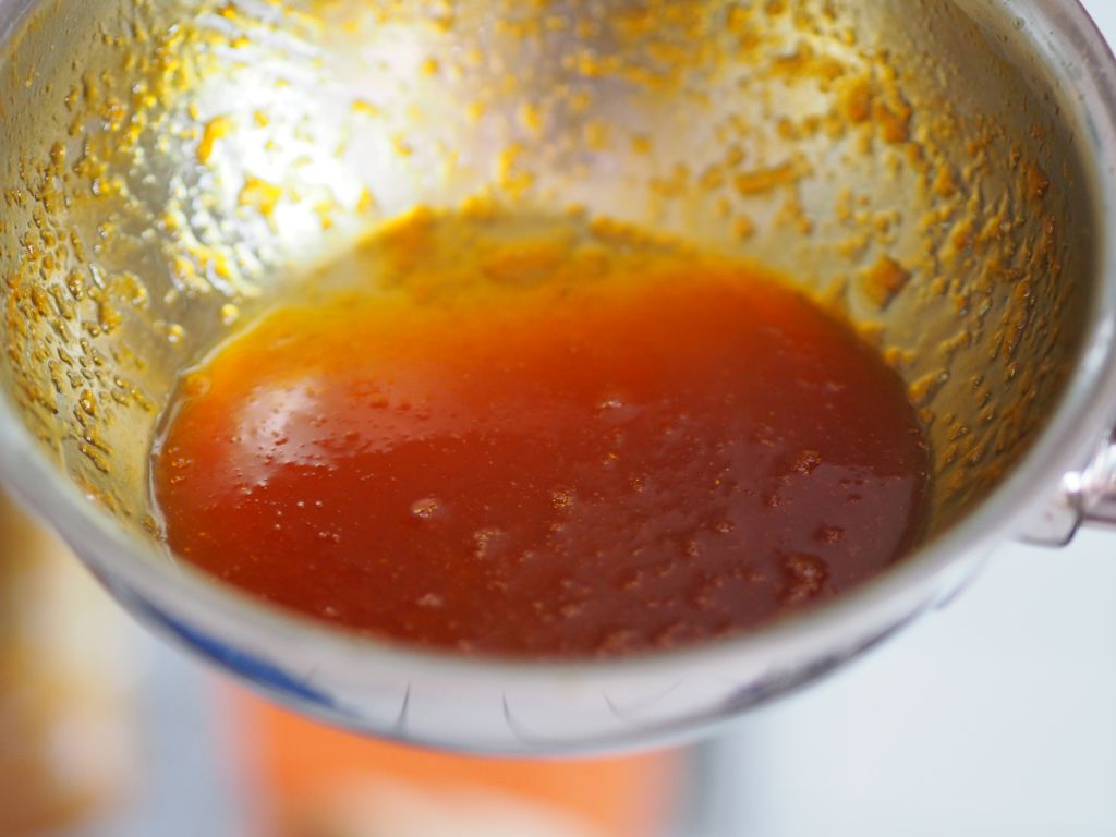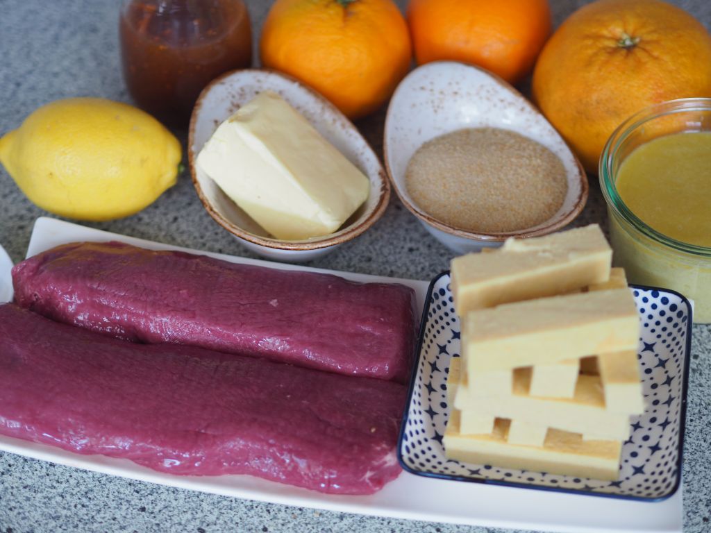 Sauce 200 ml Kalbjus mit 2 EL von der Zitruskruste verrühren.