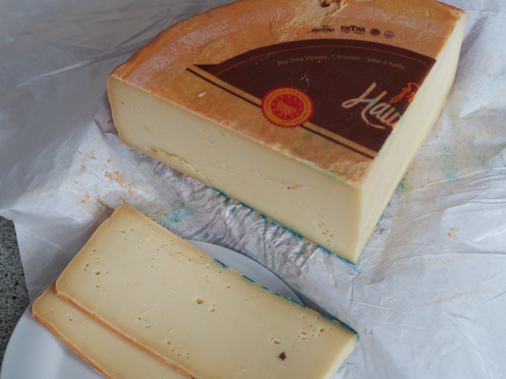 Beim Auspacken kam uns ein gewaltiger Geruch entgegen. Wir Städter sind das nicht gewohnt, aber 2,5 kg Käse können einen ordentlichen Gestank verbreiten, in Windeseile wurde unsere Küche in einen Kuhstall verwandelt, gelegen irgendwo in den Alpen des Aostatals.
