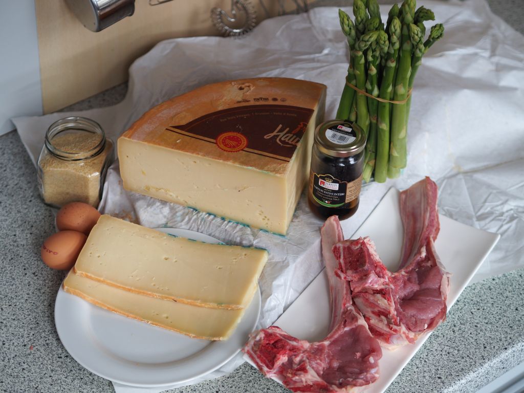 Vom Geschmack her ist der Fontina mild, die Konsistenz ist geschmeidig. Nichtsdestoweniger beginnt man tänzelnde Kuhschwänze zu sehen, legt man sich davon eine Scheibe auf die Zunge. Einen Viertel Laib Fontina, in solchen Einheiten kauft normalerweise die Gastronomie, haben wir erstanden, weil wir etwas für das Aostatal Typisches kochen wollten, wir sehen gerade die dritte Staffel von „Rocco Schiavone“ über einen römischen, ins Aostatal strafversetzten Kriminalbeamten. Bei der Suche nach Aostatal-Rezepten sind wir im Silbernen Löffel auf das Kalbskotelett Valle d’Aosta / Costolette alla Valdostana gestoßen, S. 949. Kalbskoteletts und Trüffel aufzutreiben ist nicht schwer, doch den Fontina-Käse, dazu bedarf es der Recherche im Internet. Im Transgourmet-Shop wurde der Fontina gelistet und tatsächlich: Das Transgourmet-Geschäft in Brunn am Gebirge hatte ihn lagernd, da er jedoch in Kommission übernommen wurde, so wurde uns erklärt, mussten wir den ganzen Laib nehmen. Bei der Menge an Käse wird es wohl in Zukunft noch mehr Gerichte geben, die mit dem Aostatal zu tun haben.