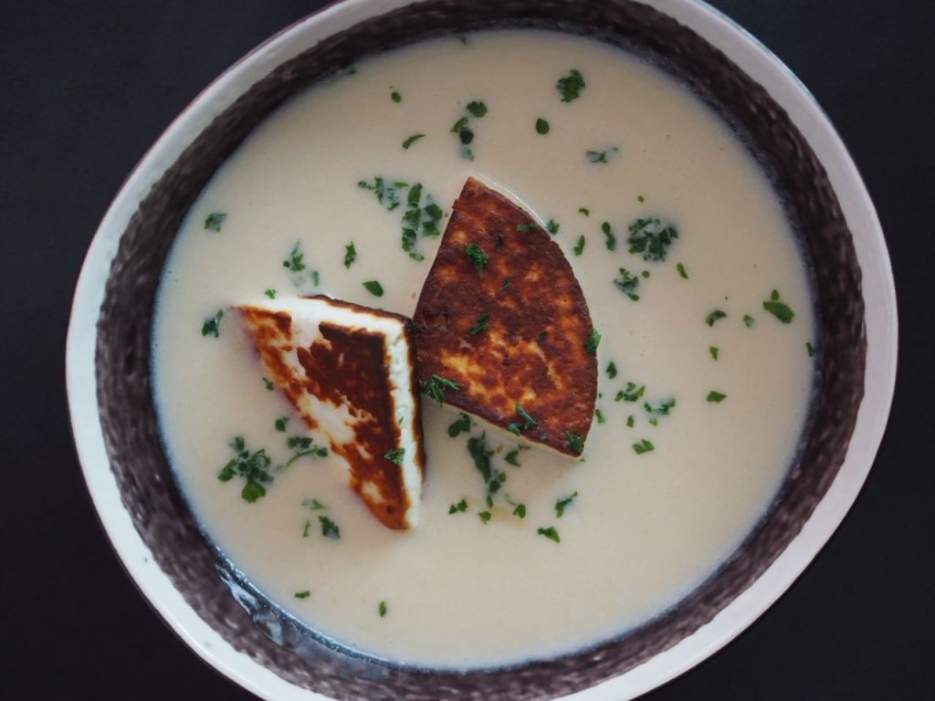 1. Petersilienwurzelsuppe mit gebratenem Manouri