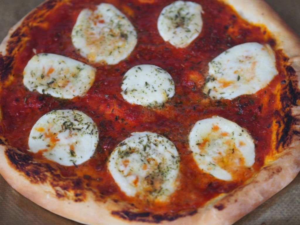 Wir hatten das Mehl mit Typ 405, das der italienischen Mehltype nahe kommt, da stand sogar drauf: „Pizzateig“. Mit etwas Semola, Hartweizengrieß, das ist sicher sehr gut, so machen wir es das nächste Mal.