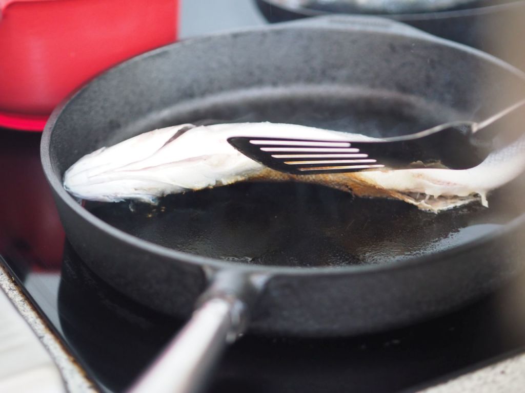 Danke. Und das obwohl wir eben nicht den Fisch mit Mehl bestäubt haben, wie es oft beschrieben wird. Man muss der Bräunung nicht nachhelfen.