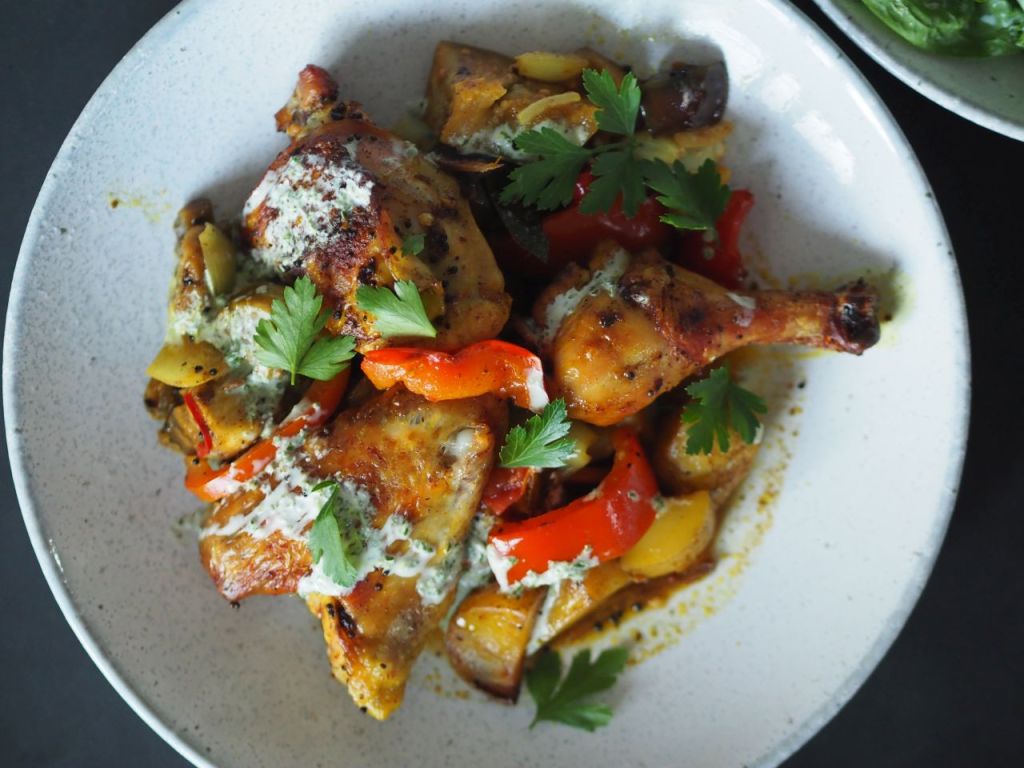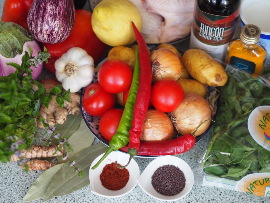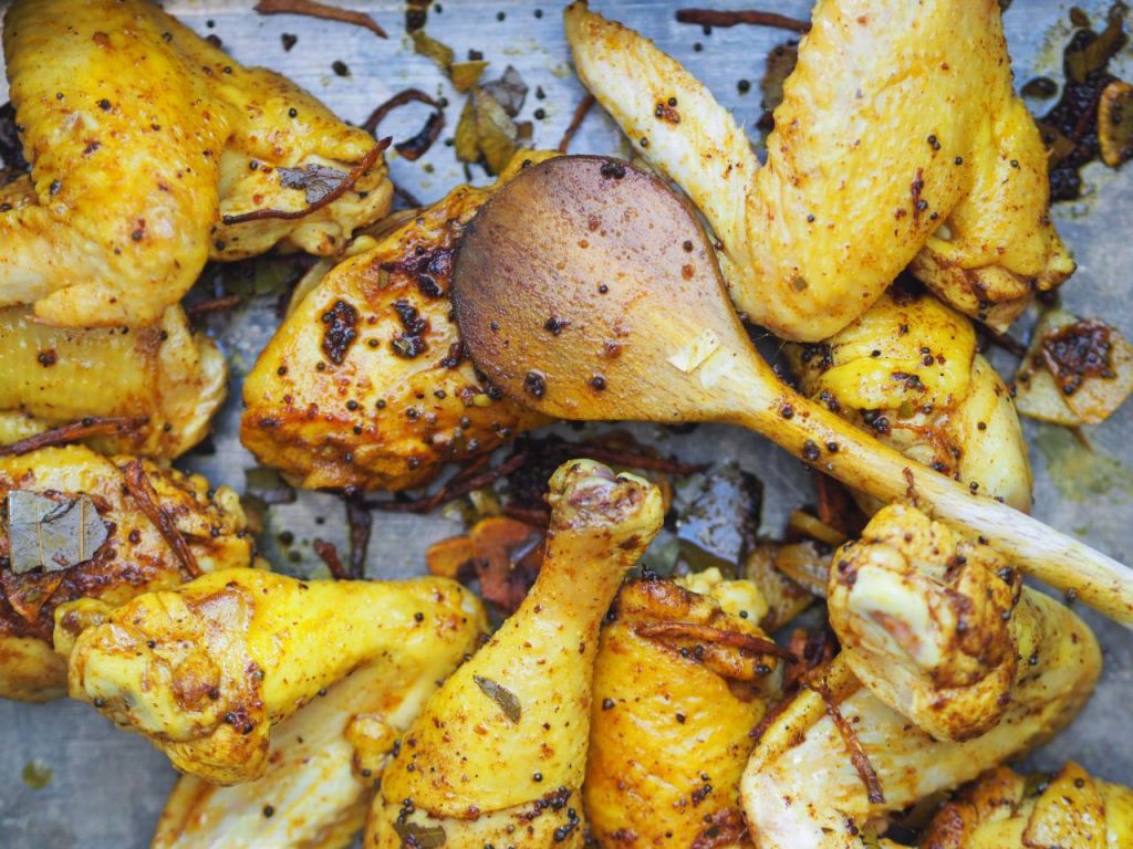Ein Wunderwerk der Aromatik ist die Bratreine. In ihr verschmelzen allerlei Zutaten zu einem wunderbaren Ganzen wie von Geisterhand. Man braucht nur Hühnerschenkeln und -flügerln, etwas Gemüse wie Aubergine, Tomate und Paprika, alles, was gut zu Huhn passt und ein paar Gewürze wie Senfkörner, Lorbeerblätter, Kurkuma sowie Chili und Ingwer, die für die richtige Schärfe sorgen und herauskommt ein geschmackliches Großereignis höchster Ordnung.