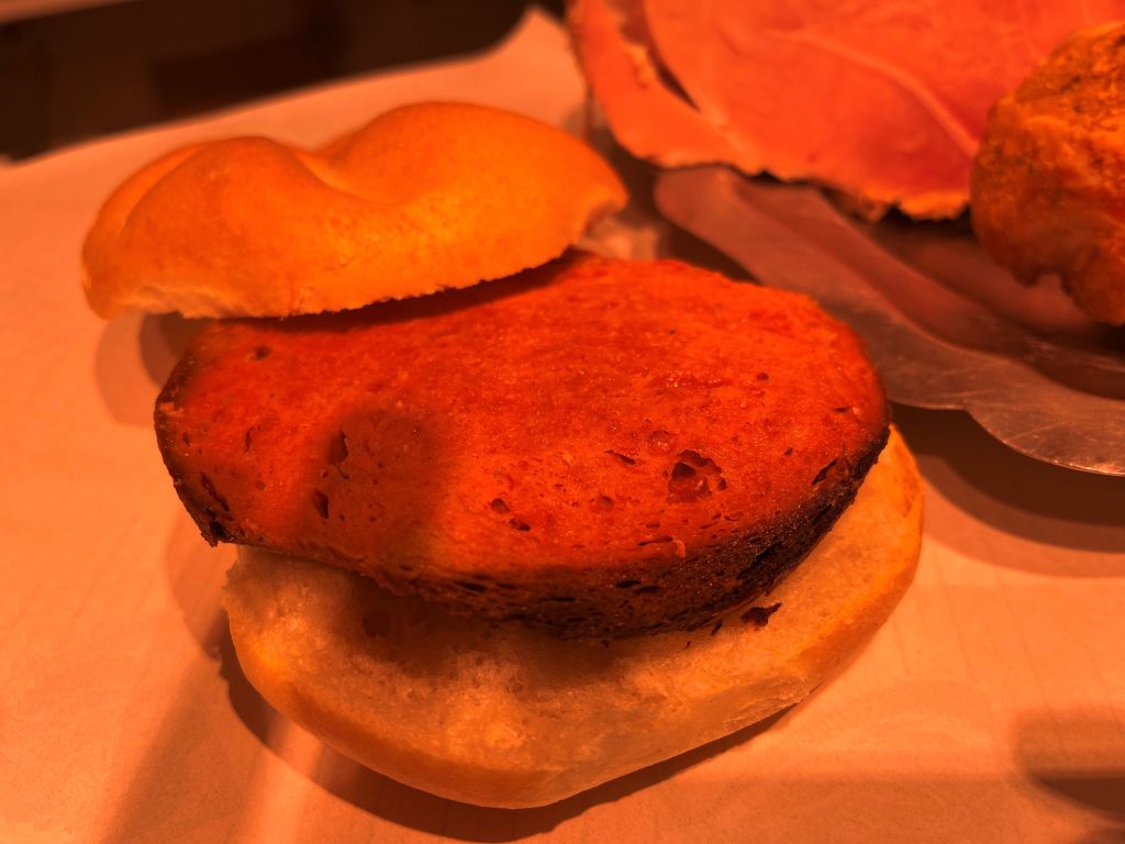 Am Morgen in der Fleischerei Ringl: diesmal gab es eine Curry-Leberkässemmel. Dazu wurden noch andere Sachen gekauft, ich sage nur Wild! Jarett, eine Rinderrasse! Demnächst auf diesem Blog.