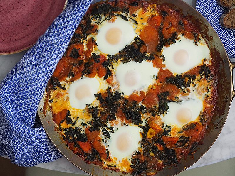 Eine Variante von Shakshuka mit Spinat findet sich in Alexander Herrmanns Kochbuch „Weil’s einfach gesünder ist“. Den Spinat haben wir saisongerecht durch Schwarzkohl ersetzt. 2 Portionen Eine Portion: ca. 470 Kalorien In einer kleinen Schüssel mit zwei Eßlöffel lauwarmem Wasser sechs Safranfäden einweichen. Den feingehackten Zwiebel in einem Sautoir anschwitzen. Einen Eßlöffel Tomatenmark dazu geben, … Schwarzkohl-Shakshuka weiterlesen