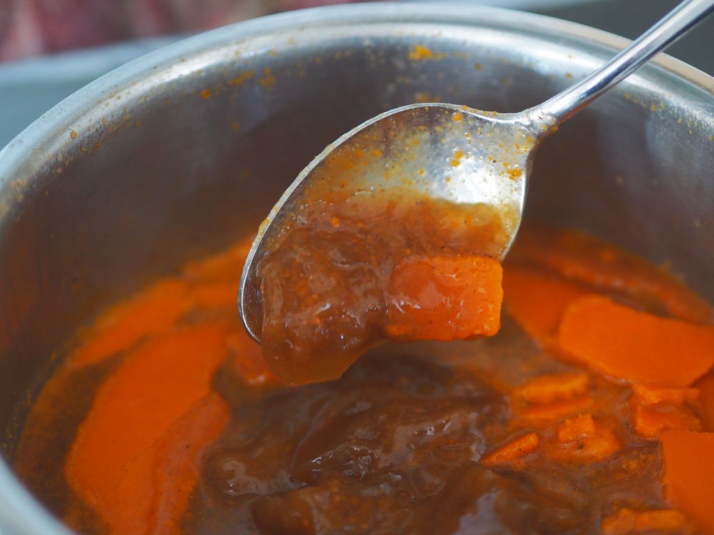 Nach 7 Stunden und über Nacht im Kühlschrank ergab es diesen gelierten Kalbsjus.