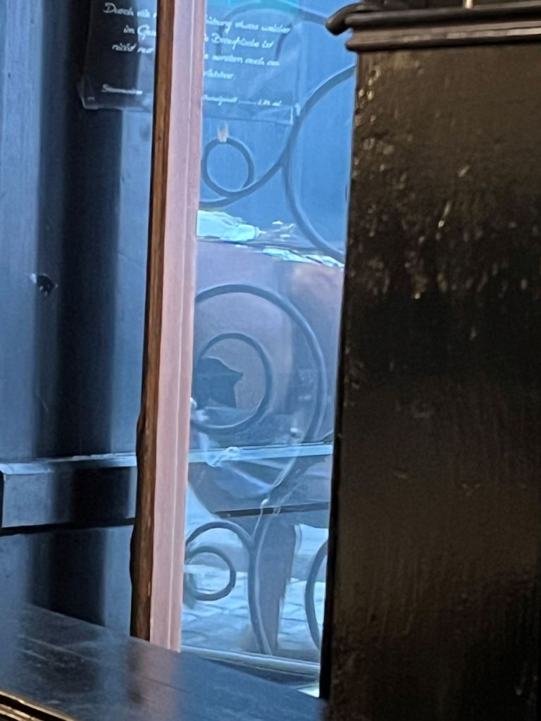 Am Rückweg kamen wir beim „König von Ungarn“ in der Schuler Straße vorbei, jenem legendären Hotel, in dessen Restaurant in der zweiten Hälfte des 20. Jhdt. das gekochte Rindfleisch einen unerhörten Aufschwung erlebte; nun ist auch das längst vorbei: im Restaurant war bereits für das Frühstück am Sonntagmorgen eingedeckt.