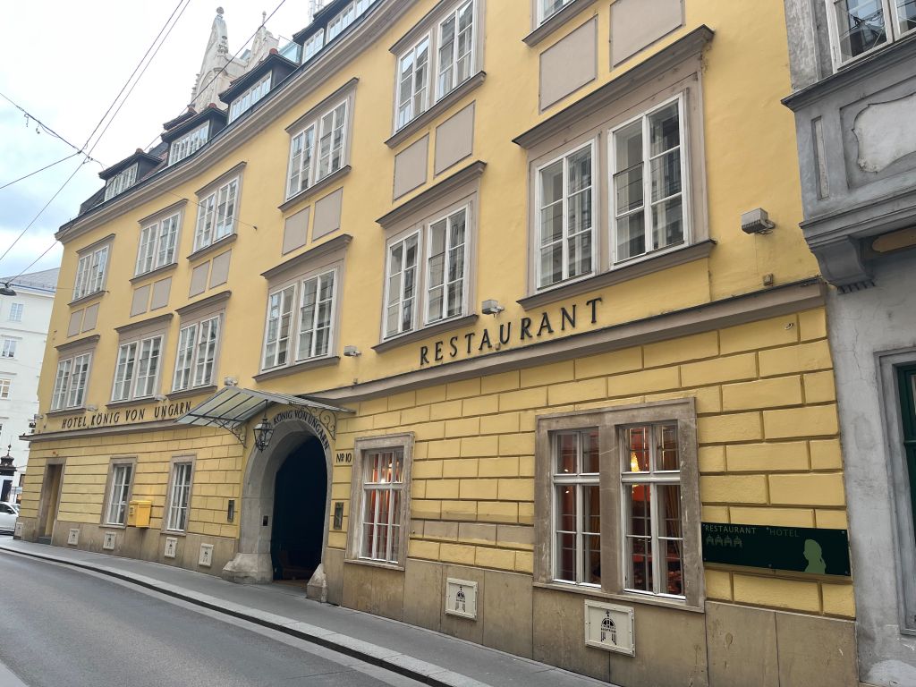 Das Hotel „König von Ungarn“, die Aufschrift „Restaurant“ täuscht erheblich.