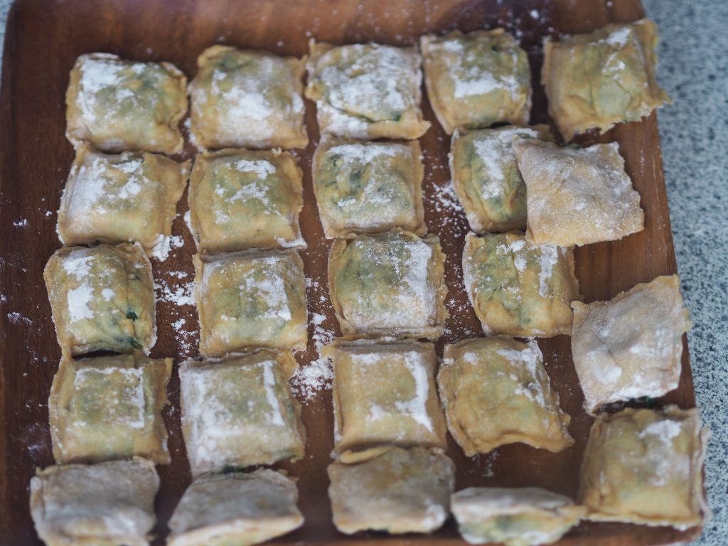 Danke! Wir haben die Maultaschen ein zweites Mal gemacht: in schwer veränderter Fassung mit Mangold: