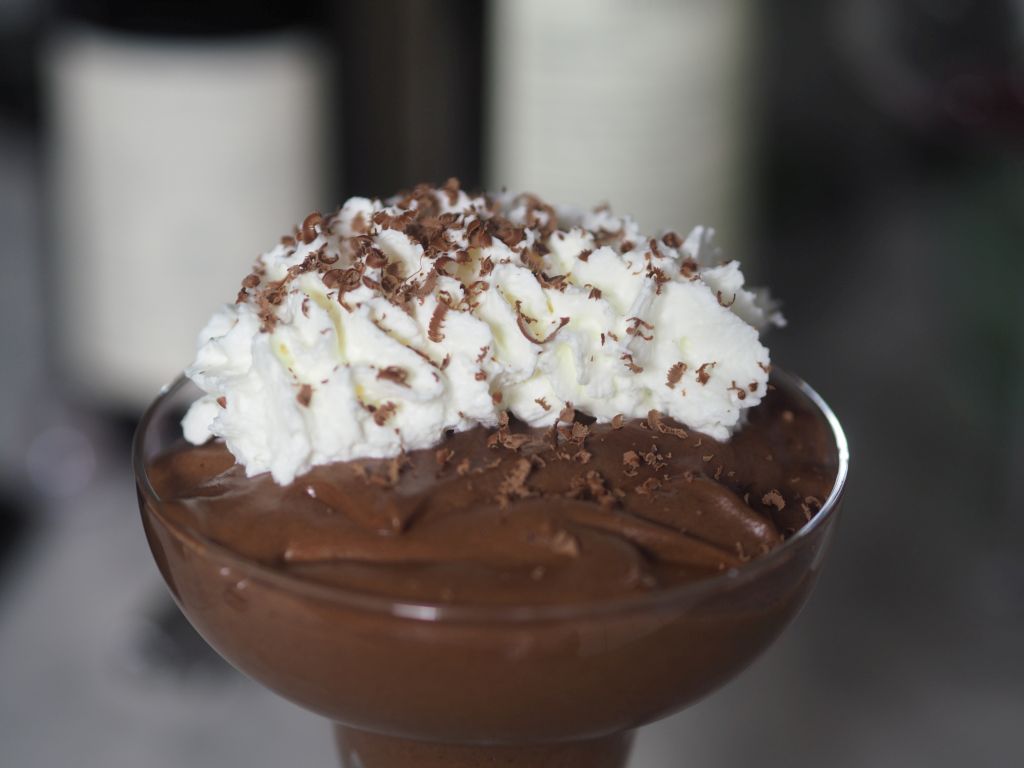 Als Nachspeise gab es Mousse au Chocolat. Binnen weniger Wochen hat sich das Mousse au Chocolat bei uns eingebürgert und ist nun nicht mehr wegzudenken. Dieses Mal war es äußerst kremig schokoladig, derogestalt mit 60 prozentiger und 70 prozentiger Schokolade zubereitet, das wird den Schokoladeur Zotter freuen zu hören! Ein Hochgenuß. Und krönender Abschluß.