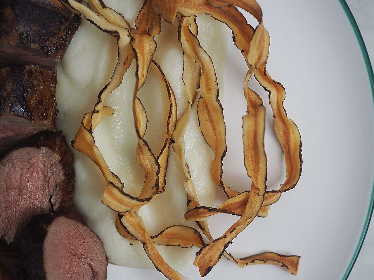 Die Vereinigung von Wild mit Kartoffel wird üblicherweise vermieden. So auch hier; das Schwarzwurzelpüree wird nur mit Schwarzwurzeln gemacht – keine Kartoffel verbirgt sich dahinter. Ob das schmeckt? Wir haben den Lackmustest gemacht – und das nachgekocht.