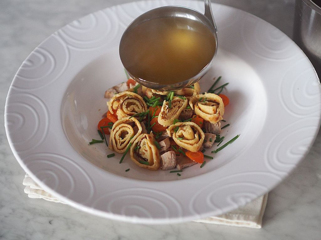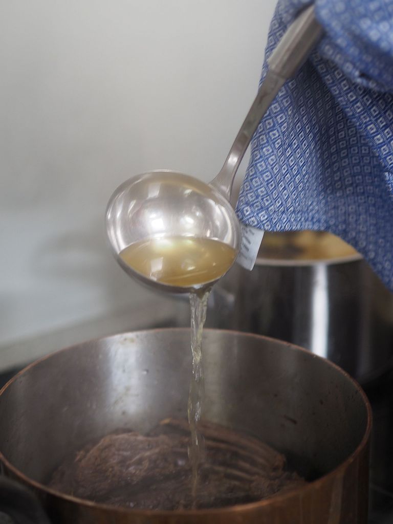 Kochen war nie etwas für Zartbesaitete, zumindest bis man es hinter Fabriksmauern verbannte. Was wir unter Kochen heute verstehen, ist meist ein Zusammenschütten von Halbfertigprodukten der Lebensmittelindustrie. Kochen damals hatte mehr etwas damit zu tun, wie man ein Feld urbar macht. Das Bild mit dem Hasen, dem das Fell abgezogen wurde, sparen wir uns lieber. Nur so viel: die Küchenfee hat‘s ausbeinelt, als wär sie eine leibhaftige Hofköchin aus der k.u.k. Zeit.