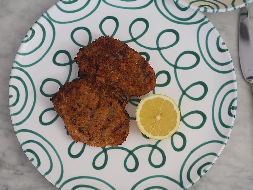 So wollen wir unser Schnitzel! Wenn man es klopfen muß, ist es schon nichts mehr.