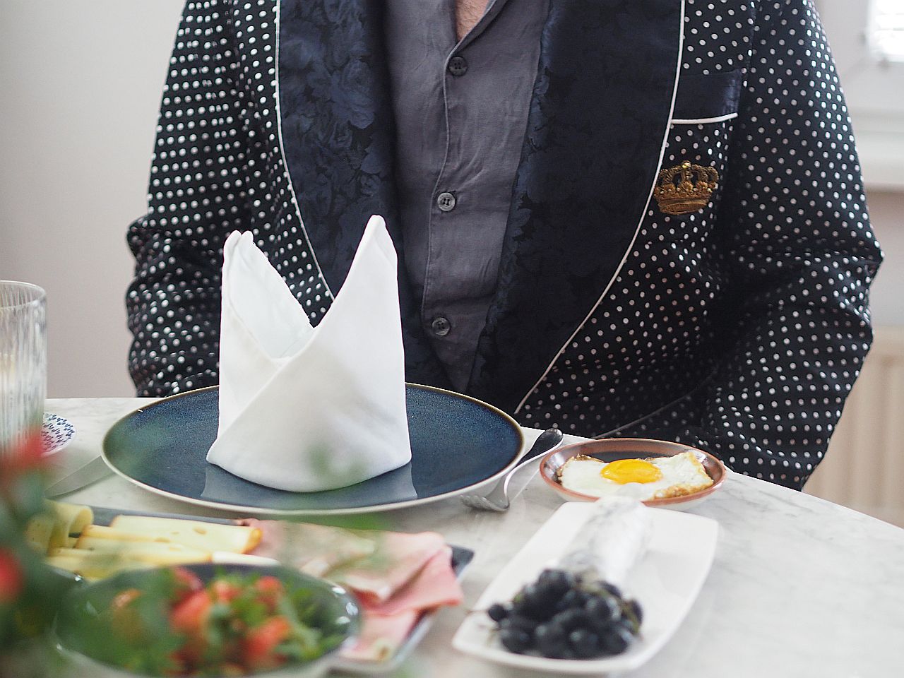 Wwurm Apfel-Basilikum-Limette-Saft, griechische Erdbeeren, Cherry-Tomaten, Paprika geschnitten, Esterhazy Eier gekocht, Schärdinger Bergbaron, geräuchert, SalzburgMilch Almkönig Emmentaler, Schlumberger Piccolo-Sekt „Austrian Sparkling“, Butter, Kaffee s. Passalacqua Cremador, Napoli