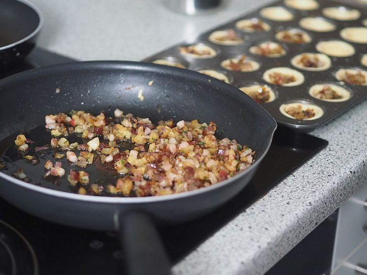 Mini-Quiche mit Apfel und Speck