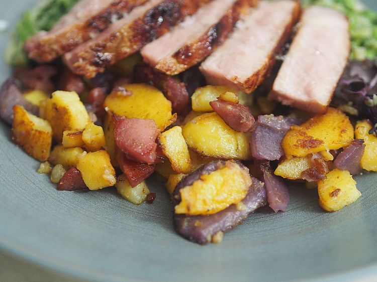 Schweinesteak mit Kochsalat (Romanasalat), Kohlrabi und Erbsen… klingt verdächtig nach einem denkwürdigen Mahl. Das Rezept wird deshalb niedergeschrieben, zum Aufbewahren für nachfolgende Generationen.