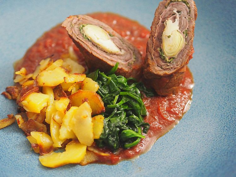 Um diesen Frühlingsbeginn gebührend in Empfang zu nehmen, gibt es Rindsrouladen mit Artischocken und Mortadella.