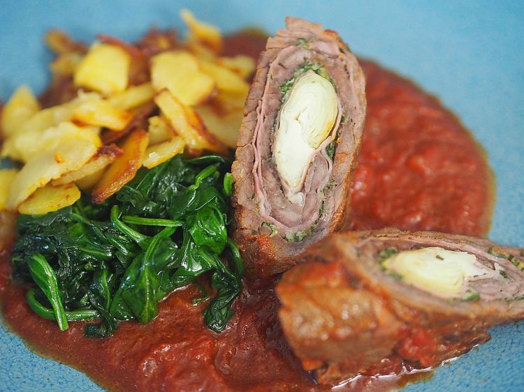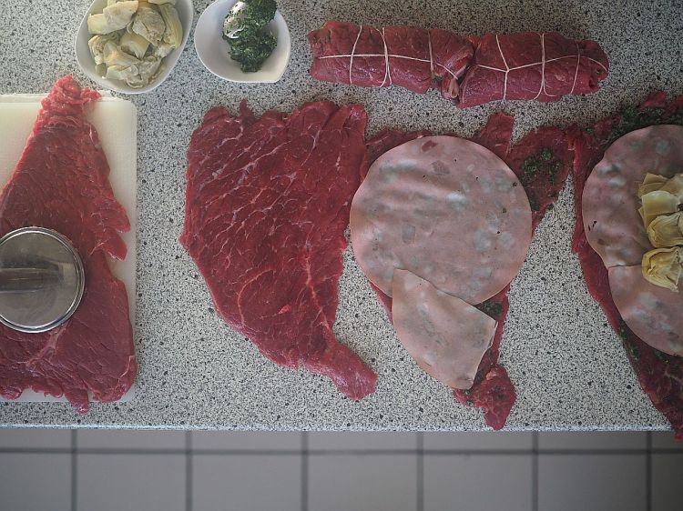 Florentiner Rindsrouladen mit Artischocken und Mortadella