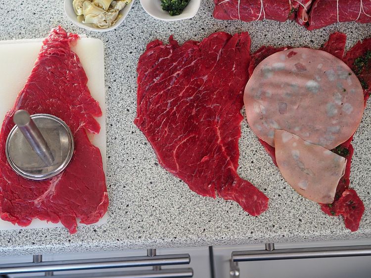 Angusschnitzel, Mortadella, Artischocken, Pola, Spinat, Knoblauch, u.s.w.