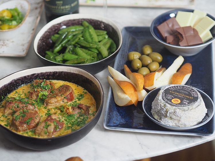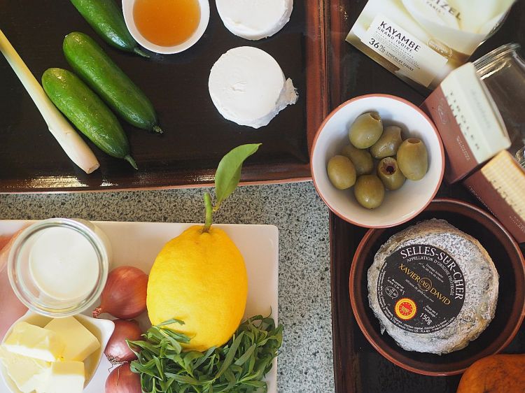 Käse: Selles-sur-Cher, Xavier David, dazu Birnen und grüne Oliven