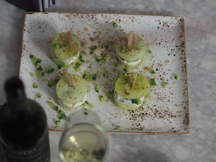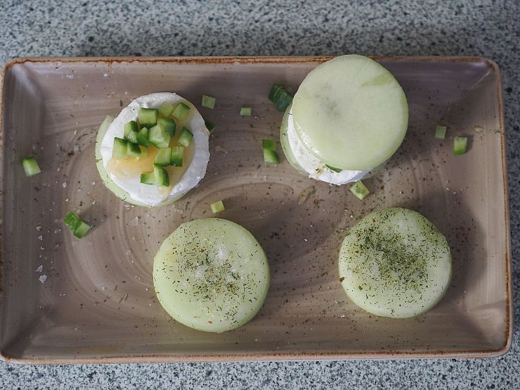 Gepfefferte Melone mit Ziegenkäse und Gurke