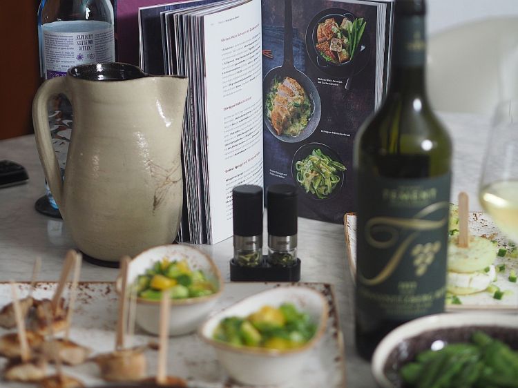 Die kürzeste Verbindung zwischen zwei Punkten ist die Gerade. In der kulinarischen Topographie ist es das Rezept, das der Geraden entspricht und das ein für alle Mal niedergeschrieben, alle weiteren Niederschriften unnötig macht. Wenn das so wäre, könnte man es sich ersparen, ein Rezept ein weiteres Mal wiederzugeben. Wären da nicht die Umwege, die man beschreitet, um zu einem neuen Ergebnis zu gelangen. Es sind genau die individuellen Abänderungen, die ein Rezept von Neuem interessant machen. Unser Ziel war es, Rezepte aus dem Buch „Zu jedem Wein die passende Leckerei“ einmal für einen Rotwein und einmal für einen Weißwein umzusetzen. Als Ausgangspunkt für den Weißwein haben wir uns den Sauvignon Blanc erkoren, der uns schon letztes Wochenende so gefiel. Der sollte nun die gemäß dem Buch anempfohlene Akkompagnierung erfahren, mit individuellen Selektionen, versteht sich. Der Rotwein kommt morgen dran.