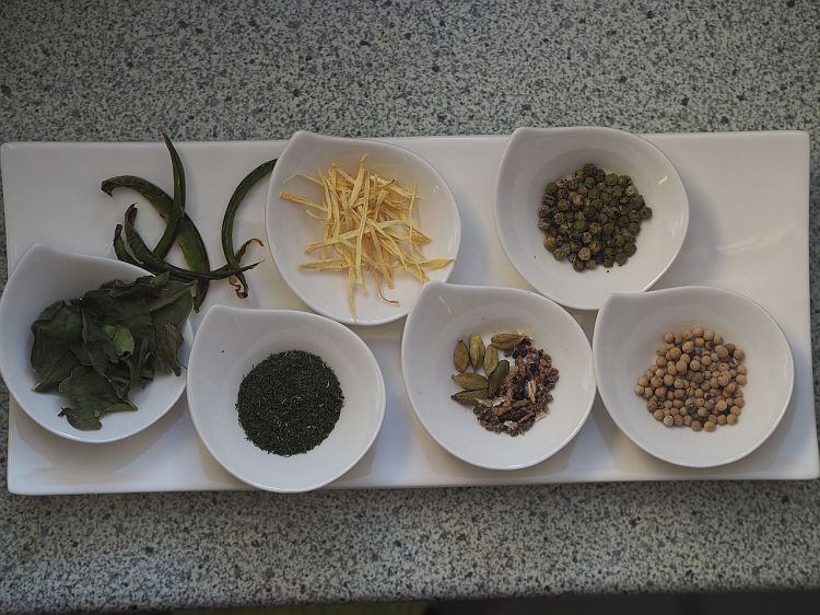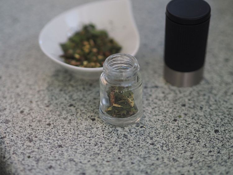 Beim Meinl gab es auch eine 7-Pfeffer-Mischung, wir wollten aber die Pfeffermischung aus dem Buch machen.