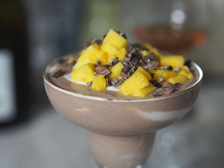 Nachspeise: Espresso-Kakao-Creme mit Mango, nach dem Mikrobiom-Masterplan-Kochbuch S.164