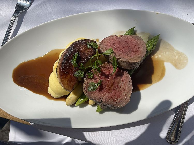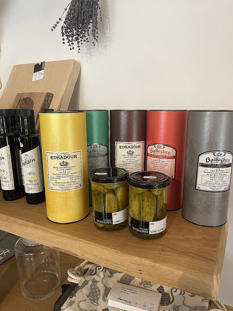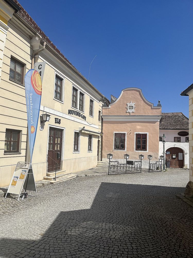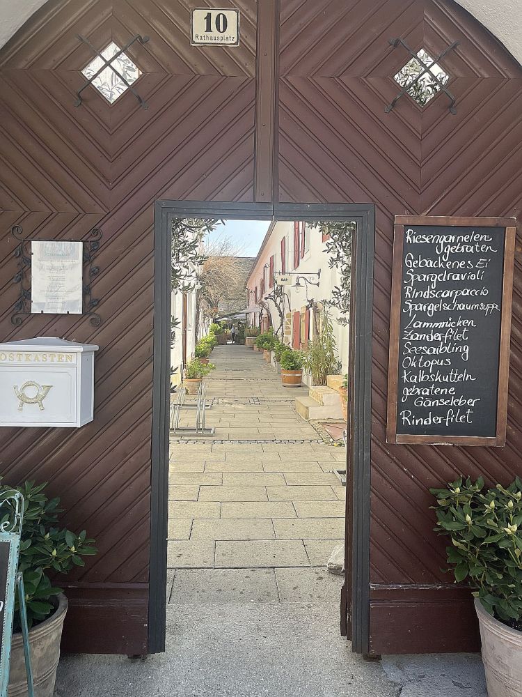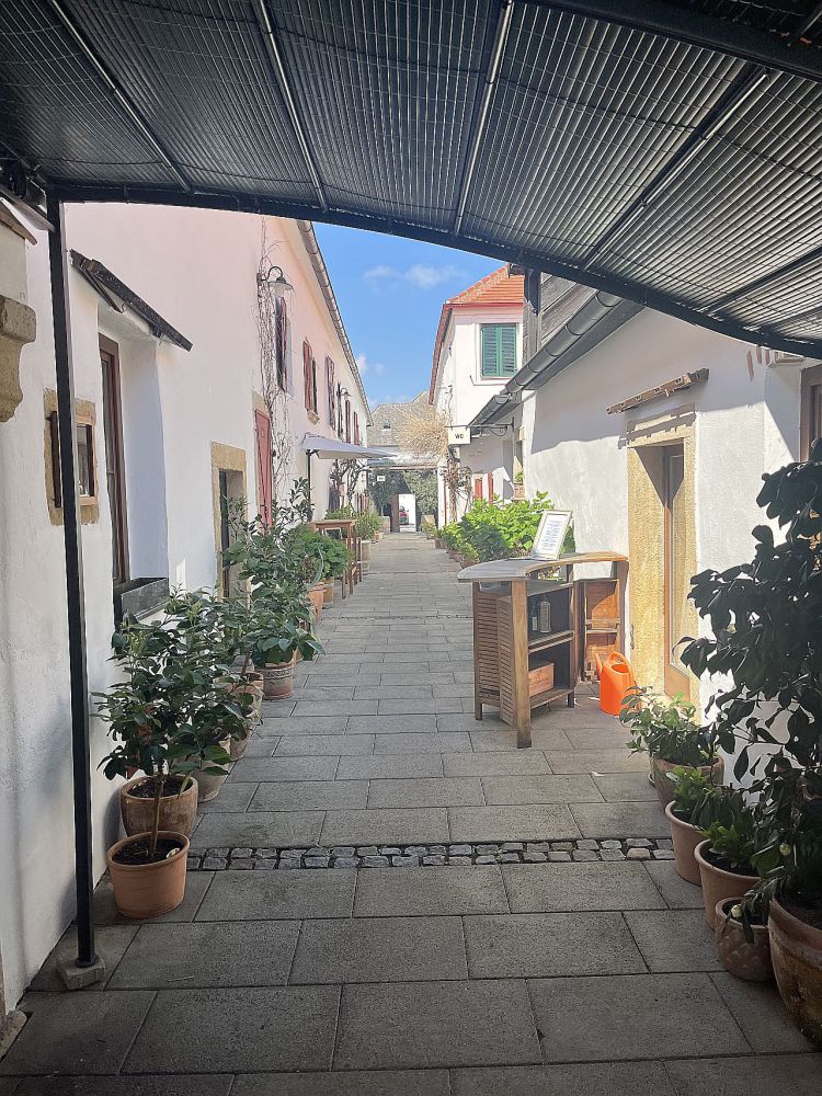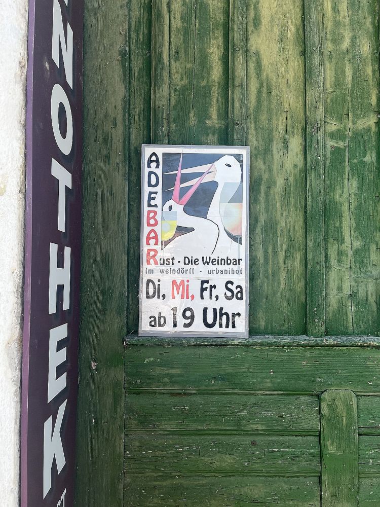 In der Storchenstadt geht man gern in die Adebar, wo auch sonst, Störche gibt es hier überall. Wir aber gingen ins Wirtshaus im Hofgassl am Rathausplatz und speisten dort in der Mittagssonne. Ein bißchen früh für die Jahreszeit, wenn der Große Wolkenschieber eine Wolke über uns geschoben hatte, war es kalt. Rinderfilet mit Gänseleber, Spargel und getrüffeltem Erdäpfelpüree. Und Gänseleber mit grünem Apfel und Portweinsoße als Hauptspeise. Beim Triebaumer-Laden am Rathausplatz versorgten wir uns mit Wein und Brot. Etwas irritiert waren wir von einer gut betuchten Frau: Ist das ein Bio-Honig? Ob es den Bienen eh gut geht? Denn sie will nur, daß es den Bienen gut geht… Über diese Fragen mit Seltenheitswert vergaßen wir zu fragen, was für ein Brot wir da eigentlich kauften. Ich wollte dann auch nicht mehr fragen, was es mit dem Whisky auf sich hat, der dort ausgestellt war: Scotch Whisky stand darauf, „Single Malt“, aber auch „Blaufränkisch Mariental Cask Finish“ und „Weingut Ernst Triebaumer“. Wie das zusammengeht, wäre die Frage?