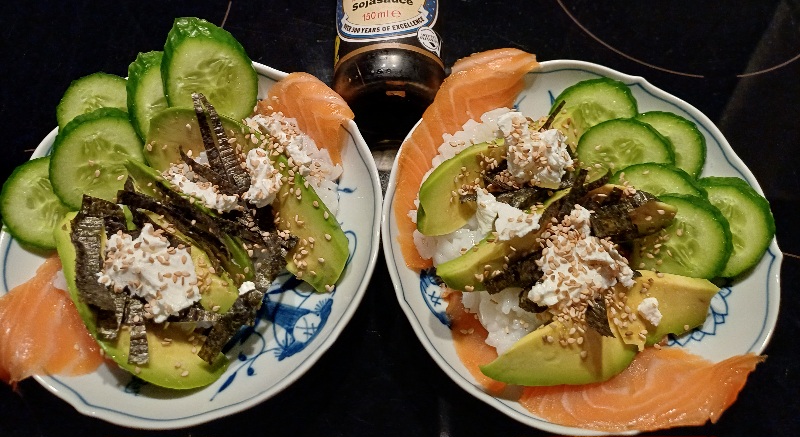 Bei mir gab es ein Lachs Sushi unkonventionell.