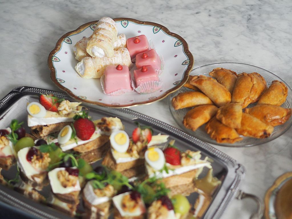 Canapés mit Trüffel-Camembert, Erdbeer, Wachtelei und Walnuß