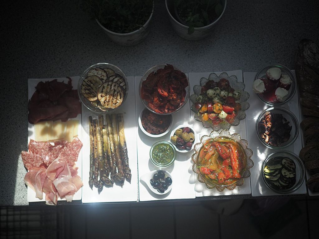 Das Anitpasti-Buffet wurde in der Küche aufgebaut, ein kleines Buffet für 2 bis 4 Personen.