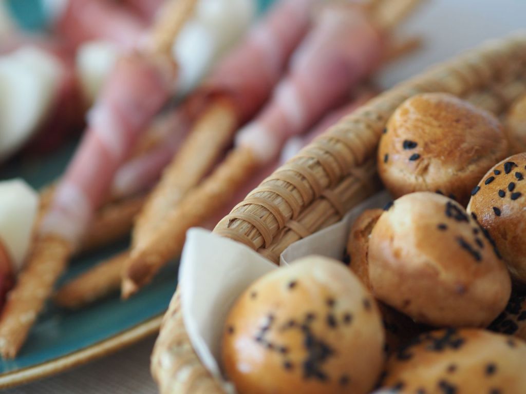 2 EL lauwarmer Milch, eine Prise Zucker mit 7 g Trockengerm aufgehen lassen. 80 g Butter mit einem Ei und 20 g Zucker schaumig rühren. ½ kg Mehl  und 200 ml lauwarmes Wasser mit dem Knethaken verrühren und dann die Germmischung dazu geben. Eine Stunde gehen lassen. Kleine Kugeln machen, mit Ei bestreichen und mit Sesam und Schwarzkümmel bestreuen. Bei 200 Grad im Backrohr backen, bis die Burger bräunlich knusprig sind.