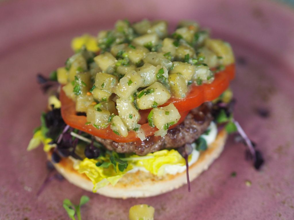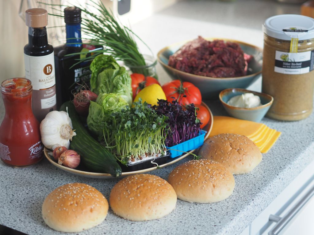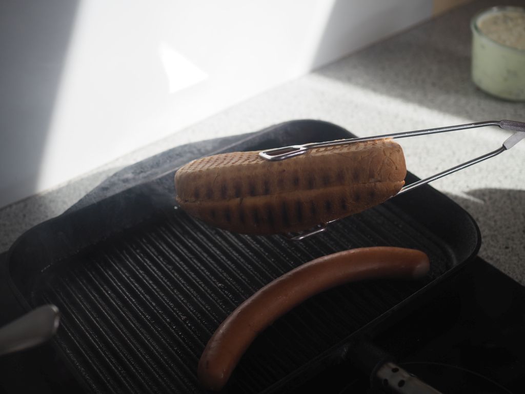 Rezept: Eine Pfanne erhitzen, etwas Olivenöl hineingeben und Croutons vom alten Roggenbrot darin langsam braten. In einem hohen Becher Dijon-Senf à l‘Ancienne, gehackten Knoblauch, einen Spritzer Zitronensaft und zerdrückten schwarzen Pfeffer geben und verrühren. Dann kommt Dotter hinzu, Worcestersauce, Olivenöl, man verrührt alles mit dem Handmixer, unter Beigabe von Olivenöl, strenge Duftnoten steigen auf, bis es eine Creme wird. Die gehackten Sardellen kommen hinzu und der geriebene Parmesan.