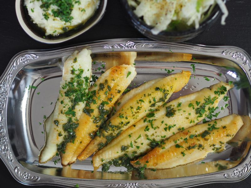 Inspiriert von Alain Ducasse, „Meine Bistro Küche“, Seezunge Müllerin, S. 100.