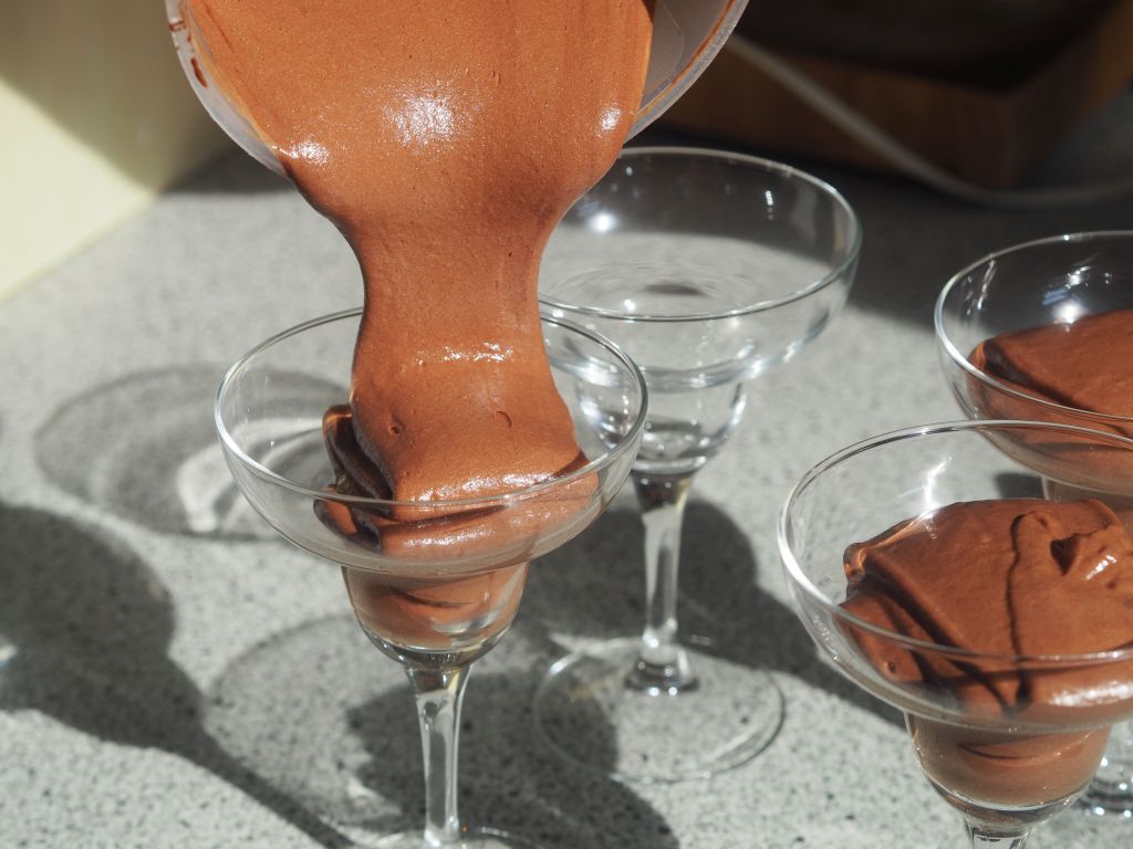 Mousse au Chocolat wie im Fernsehen gezeigt in „Besseresser – Sebastian Lege deckt auf“ (ZDF, S11, Ep3 , ausgestrahlt am 17. Sept. 2024, in der ZDF Mediathek verfügbar bis 2029, ab Minute 34 geht es um das Mousse au Chocolat), gefilmt in der Küche von Daniel Rebert in Wissembourg: